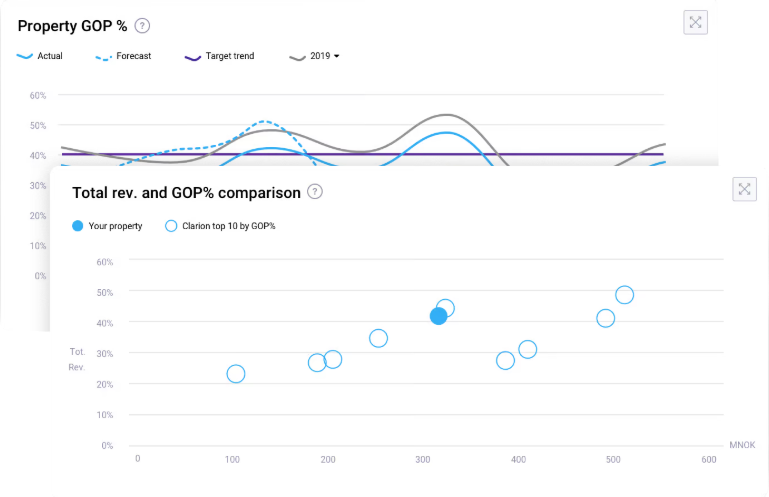 Performance benchmarking enables you to measure KPIs against your own past results as well as those of peers—whether within your group, similar types of hotels or restaurants in your region, or by department. As a result, you clearly understand how a property—or your entire portfolio—compares across best, average, and below-average performers.